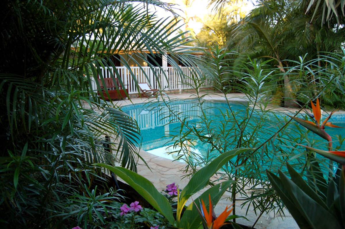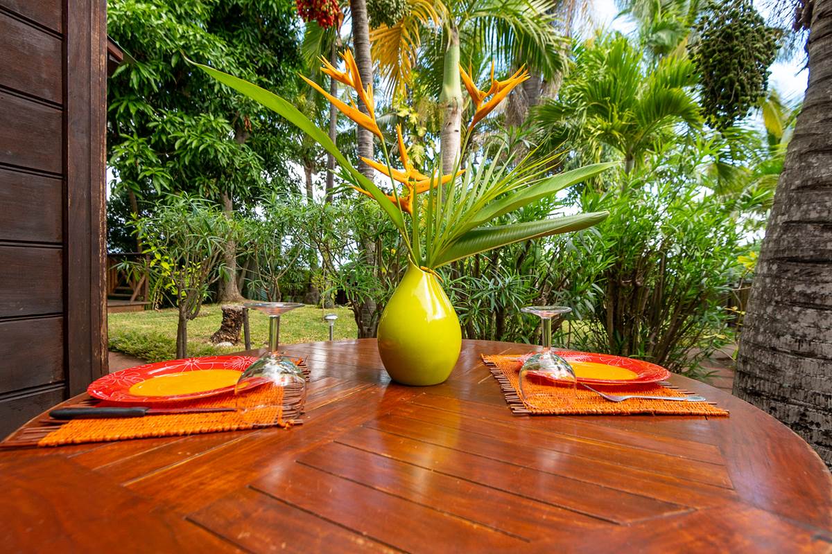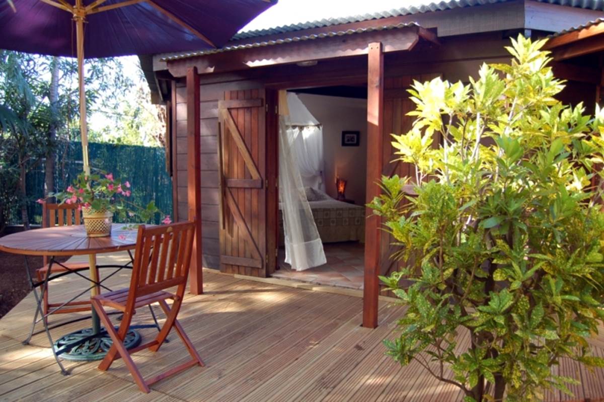 Au sein d'un jardin tropical centenaire, nous vous proposons trois bungalows en bois exotique, confortable et reposant, idéal pour des couples en quête de nature, de calme et de sérénité. Nous disposons également de deux appartements dans une case créole, soigneusement meublés et décorés, ou vous apprécierez particulièrement la varangue ombragée en famille ou entre amis, parfaite pour les repas en plein air et les couchers de soleil face à la piscine noyée dans une végétation exotique luxuriante.